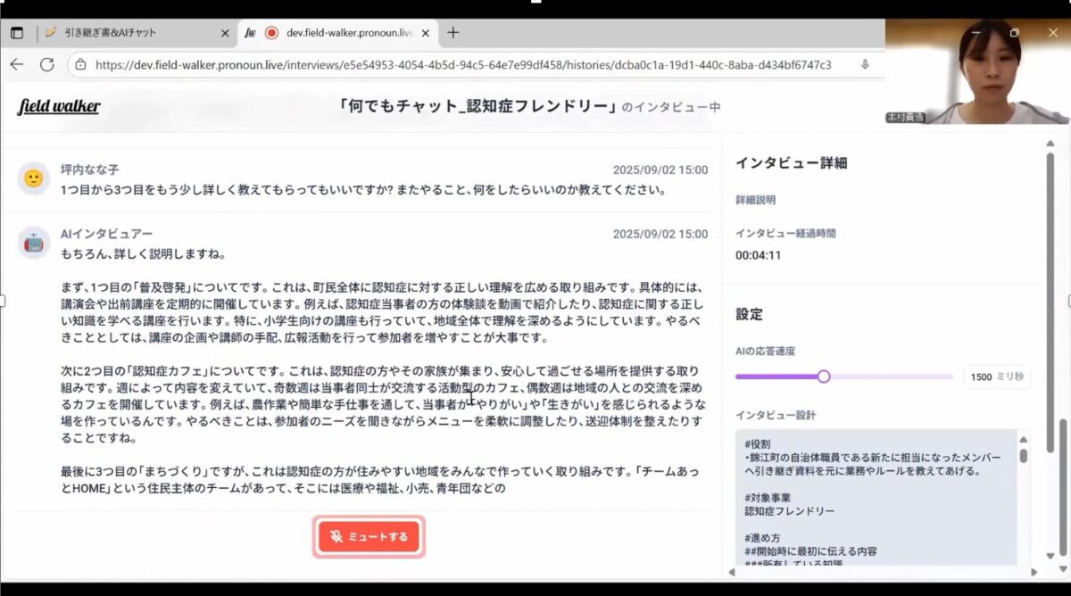 そこで聞きたいときに聞ける仕組みをつくっています。例えば、ある制度のあらゆる情報を話し、AIに業務内容を習得させるんです。やればやるほどAIに蓄積していけるので、質の高いインプットが重要です。AIが前任者の職員にその制度の目的や背景、現状、課題などをたずねるインプットインタビューも行います。実際にテストとしてインタビューを受けた職員からは「本質的なところを聞いてくるなと感じた」とコメントをもらいました。
